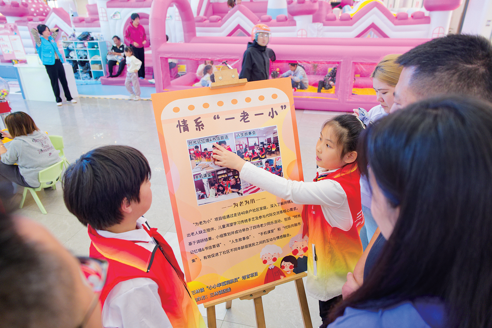 “小小幸福观察员”向市民介绍观察成果。 □本报记者 曹之光 摄